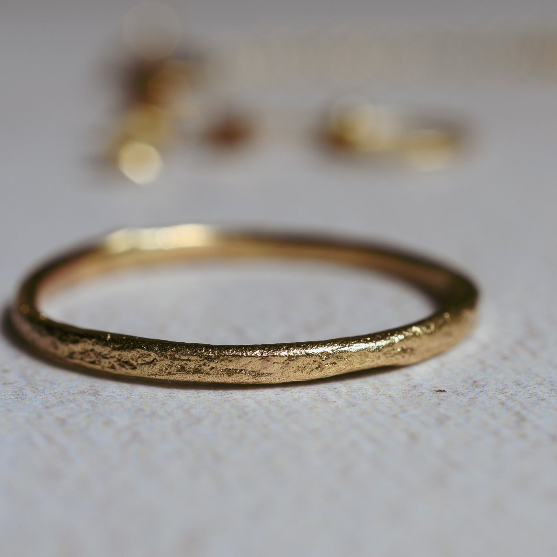 A sweet circle of gold for the finger, minimal and understated but with all the beautiful, evocative texture of an ancient artefact. Light and effortless to feel like a second skin, this would also make a great choice for a subtle wedding band, a placeholder engagement ring, or a meaningful promise ring.