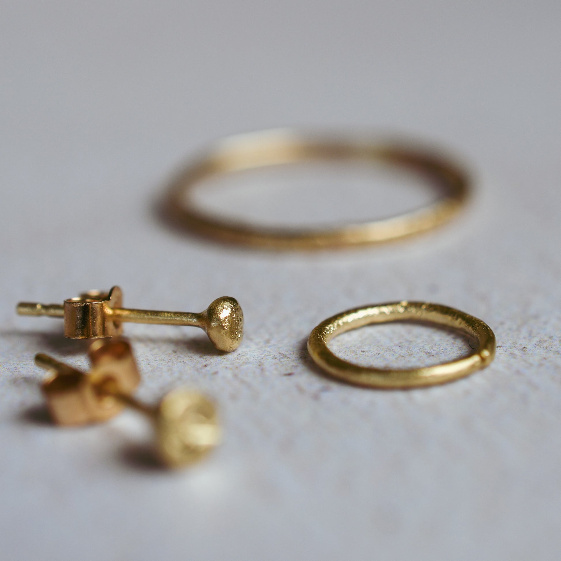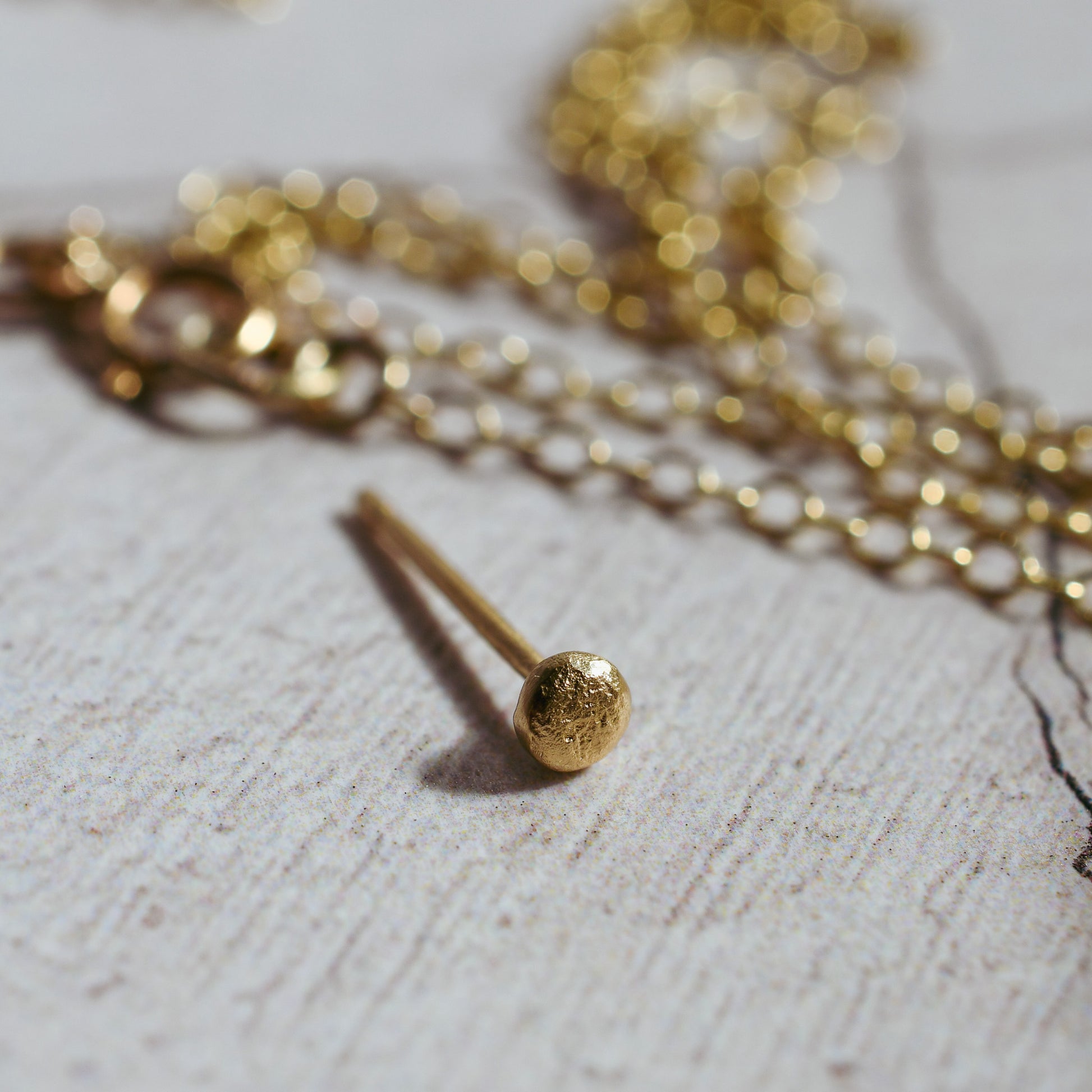 A single, delicately textured, solid gold stud - a quiet ember of ancient gold to add a little timeworn beauty to your ear curation. An everyday staple, suitable for multiple ear positions or for nose piercings.