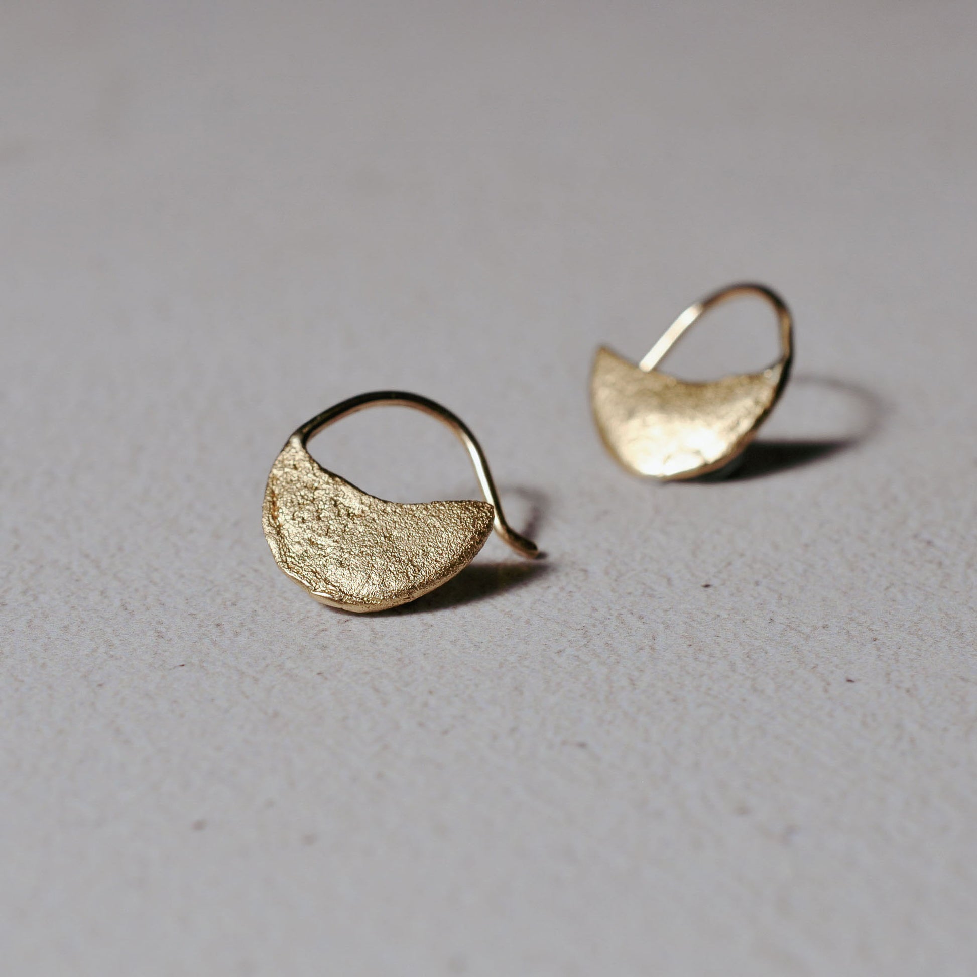 These Selene earrings embody understated elegance. Minimal and quietly confident in shape, and with a raw gold surface texture inspired by ancient craftsmanship, they absolutely glow. A perfect blend of timeless style and modern; low-key luxury for everyday wear.